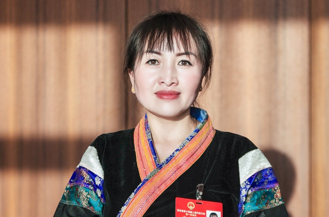 身著少數民族服飾的委員正在認真記錄。人民網 陽茜攝