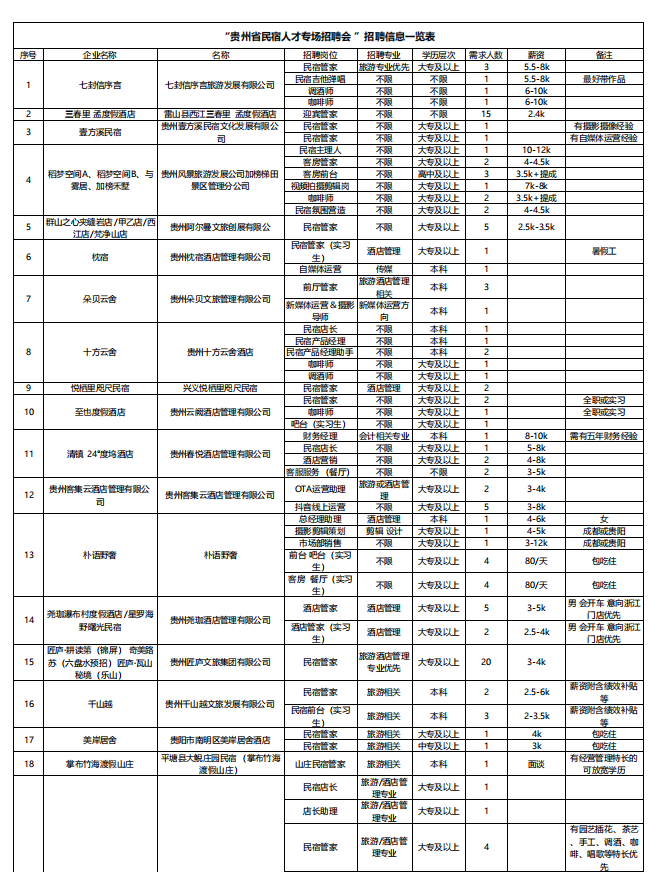 企業云集 職等你來 貴州省民宿人才專場招聘會于6月18和19日舉行