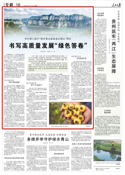 從經濟社會高質量發展到人們的日常生活,貴州在生態文明建設上先試先行,持續探索,如今綠色發展已融入干部群眾的具體行動,化為日常生活的點點滴滴,貴州正奮力書寫高質量發展的綠色答卷。