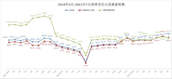2019年4月-2021年7月貴州消費者信心及健康指數。大數據統計學院提供