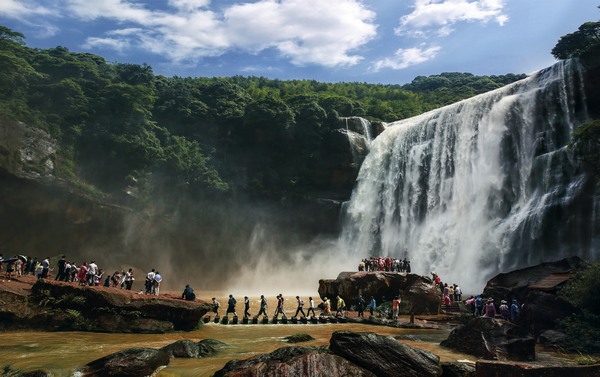 貴州通過發展旅游產業化帶動群眾增收致富,圖為赤水大瀑布景區。喻德江攝