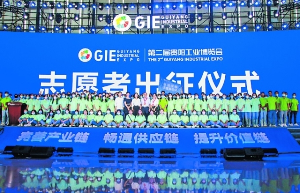 9月25日,第二屆貴陽工業博覽會志愿者出征儀式舉行,來自貴陽學院的150名大學生志愿者接受培訓后出征。