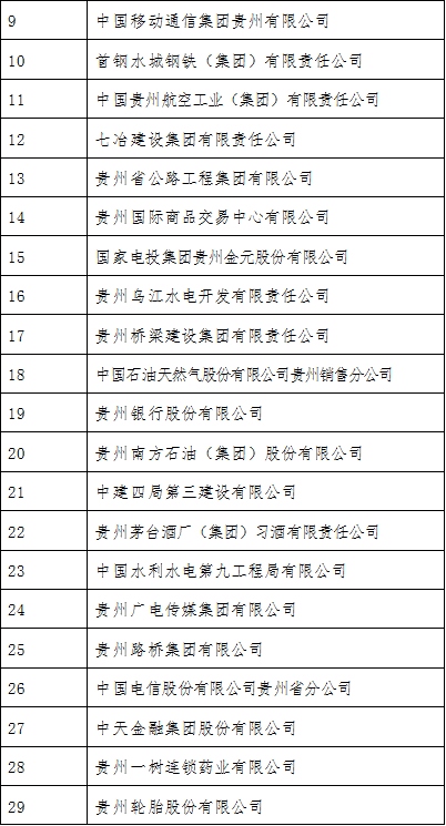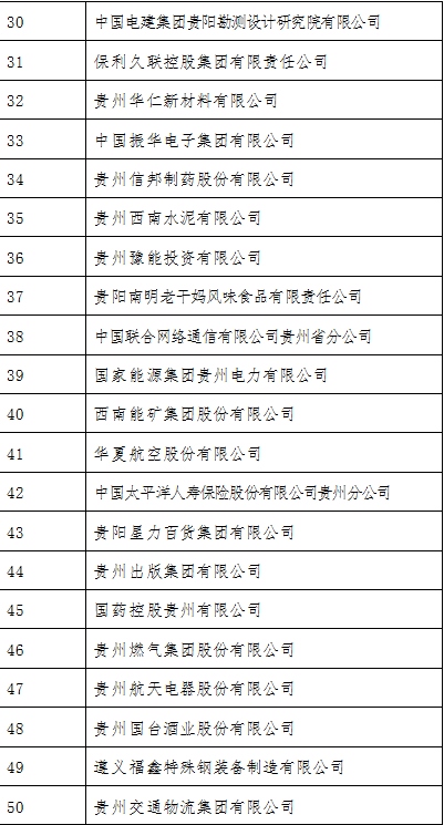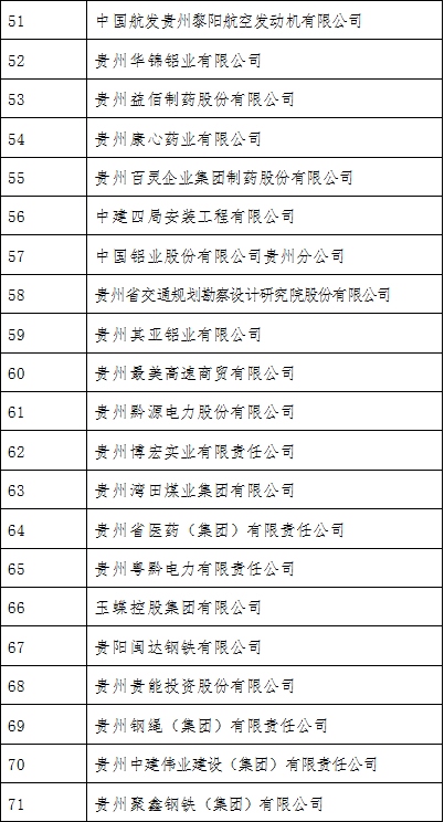 附2021貴州百強企業名單: