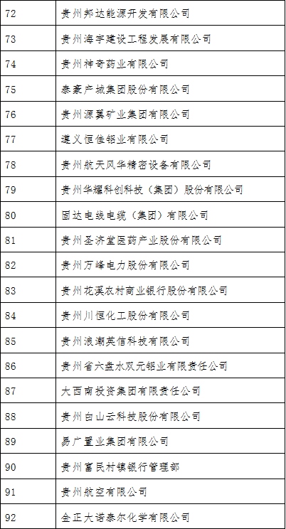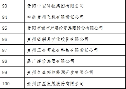 2021貴州100強企業榜單出爐