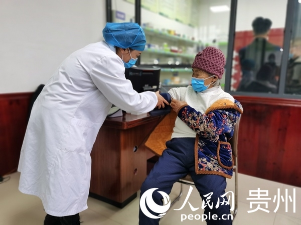 福泉市金山街道辦事處太平村衛生室村醫袁德莉在給病人檢查身體。人民網 陳晶晶攝