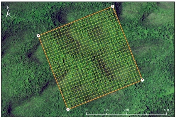 項目組通過遙感影像判讀、RTK(Real - time kinematic)載波相位差分技術實地勘測相結合,目前已初步完成大樣地四至范圍和邊界確定。根據設計,該大樣地采用相鄰格子法進一步劃分為625個20米×20米的小樣方,擬對大樣地內全部植物、動物、微生物及其無機環境開展系統、全面的深入調查研究和長期監測,預計2022年年底前完成大樣地內胸徑1厘米以上全部樹木的本底調查與建檔工作。