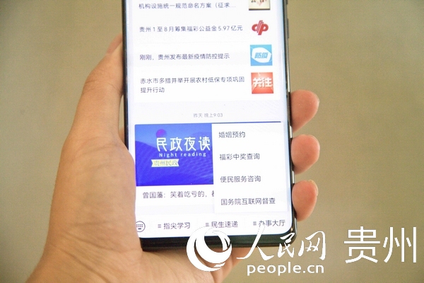 貴州民政政務微信功能界面。人民網 龍章榆攝