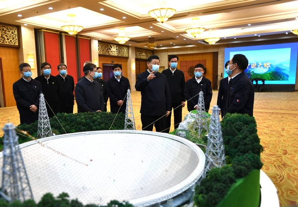 2021年2月5日上午,習近平總書記親切會見了“中國天眼”項目負責人和科研骨干,聽取“中國天眼”建設歷程、技術創新、國際合作等情況介紹。習近平總書記通過視頻察看“中國天眼”現場,并同總控室的科技工作者代表連線,向他們并向全國廣大科技工作者拜年。他強調,全面建設社會主義現代化國家,必須堅持科技為先,發揮科技創新的關鍵和中堅作用。