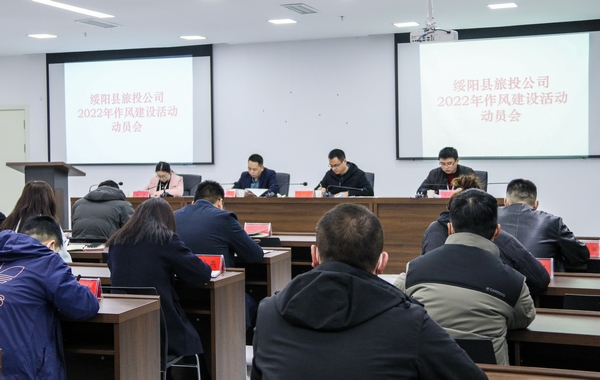 圖為綏陽縣旅投公司在開2022年作風建設活動動員會。賈滿芬攝