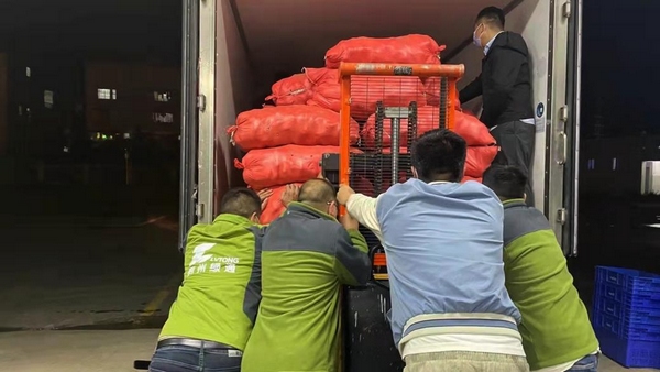 3月13日至17日,務川綠通公司79名員工79共做核酸檢測7輪,均呈陰性,但近半員工因配送工作健康碼呈黃碼,為配合全縣疫情防控工作,已報備并居家隔離,這也導致保障運營上崗人數驟減,為后續保供工作帶來實際困難!鞍滋熳鑫膯T,晚上忙生產,我們在崗人員必須一人干兩人的活!鞭k公室人員說。