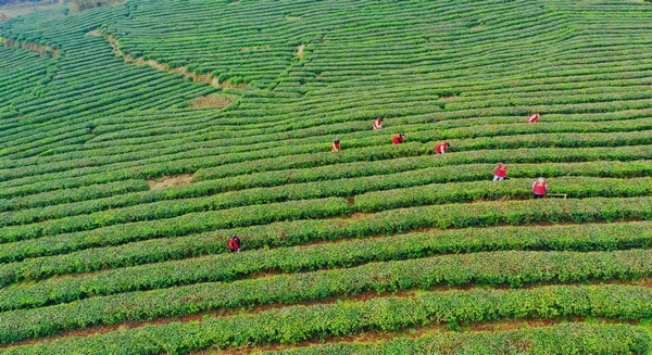 開陽縣南龍鄉茶葉基地里,群眾在收采春茶。袁福洪攝