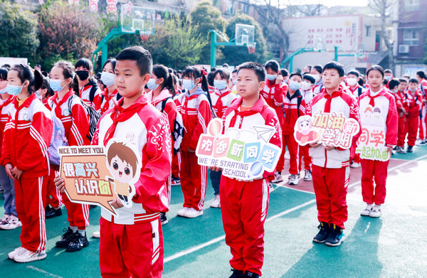 18日一早,曾郁分別帶隊前往兩所民辦小學,將孩子一個不落地接進云巖第一小學!盀橄⒆拥哪吧,我們舉行了隆重熱烈的歡迎儀式!痹粽f,儀式感滿滿的歡迎儀式,既讓孩子有歸屬感,又能增加他們對新環境的興趣。另外,為讓分流學生盡快了解和熟悉校園環境,老師還帶著孩子進行了校園環境教育。
