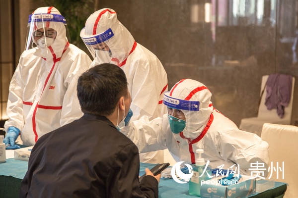 黨代表們在駐地進行核酸檢測。人民網 陽茜攝