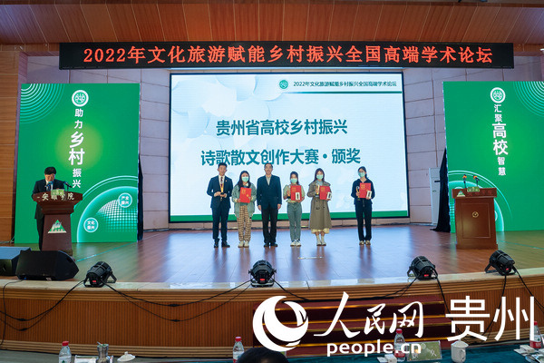 貴州省委教育工委委員、省教育廳黨組成員,副廳長戰勇同志為貴州省高校鄉村振興詩歌、散文創作大賽學生組一等獎頒獎。人民網 涂敏攝