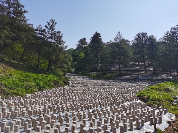 新種植擺放的菌棒。