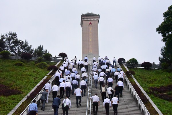 瞻仰革命烈士紀念碑并敬獻花籃。張雷攝