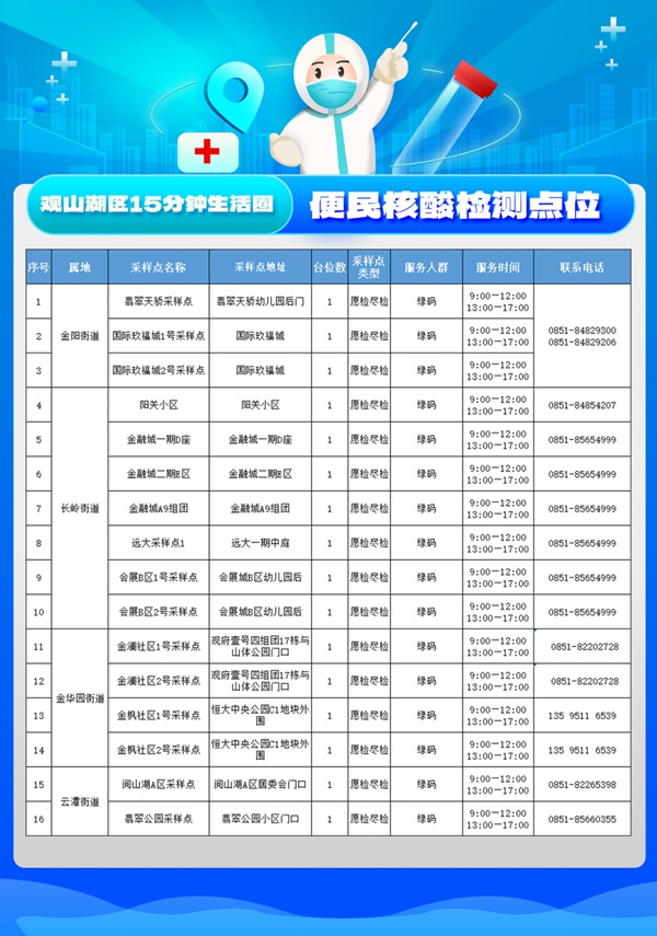 最新公告!觀山湖區新增16個15分鐘生活圈便民核酸檢測點