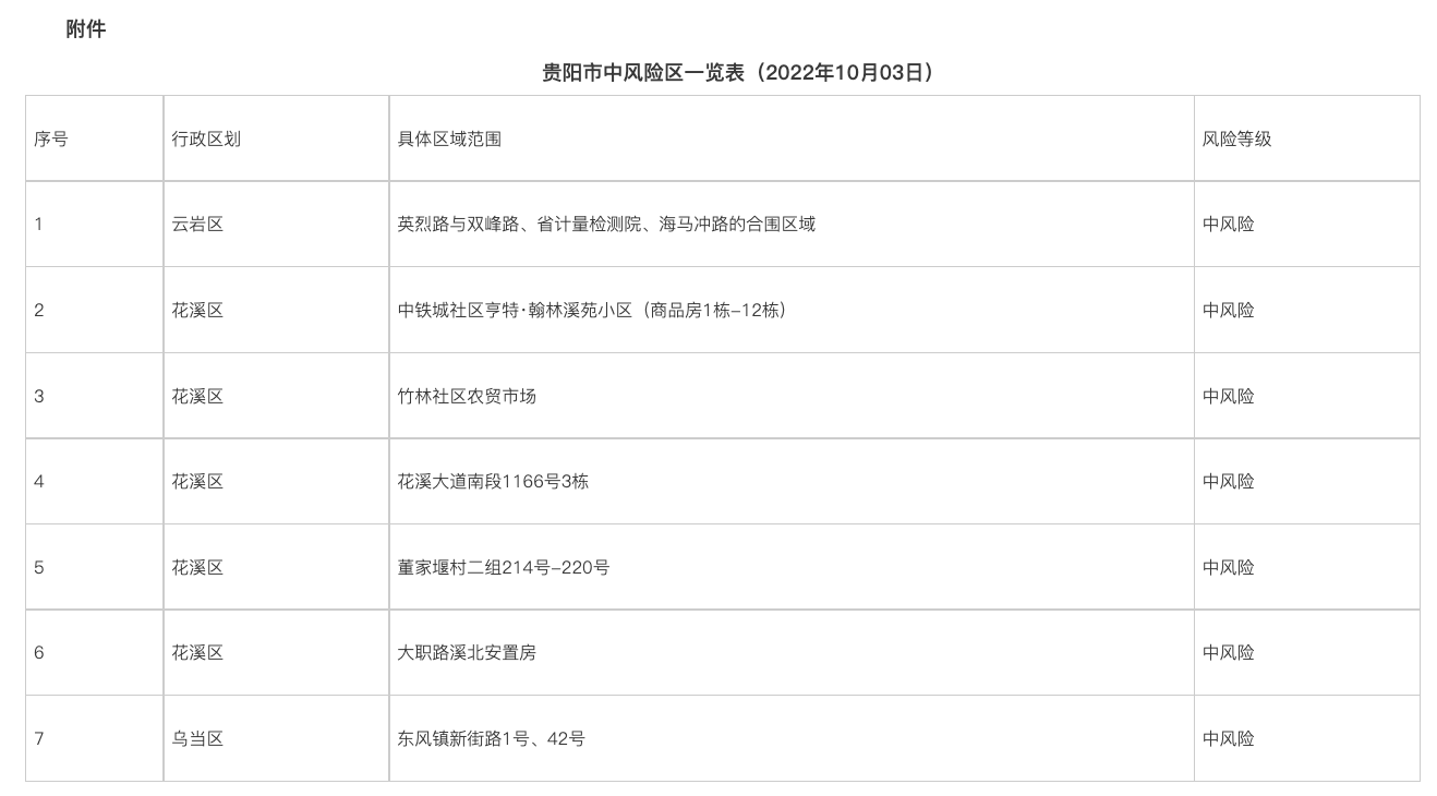 附件:貴陽市中風險區一覽表(2022年10月03日)