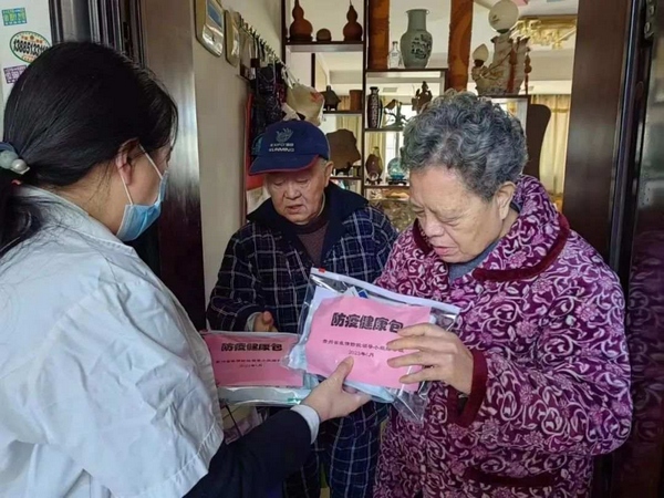 在入戶發放防疫健康包的同時,街道工作人員還詳細詢問群眾的身體及生活狀況,介紹相關藥物的使用方法,叮囑做好個人防護?!拔覀冎饕獮榻值赖牡捅?、特困人員等困難群體免費提供藥品,同時做好定期健康監測,一旦出現突發狀況,我們也要幫忙解決?!痹铺督值郎鐣聞辗罩行墓ぷ魅藛T瞿霞介紹,全區防疫健康包共有1972份,各鎮、街道統一到區民政局領取,第一時間向困難群體發放,盡可能保障短期內的日常防疫用藥需求。
