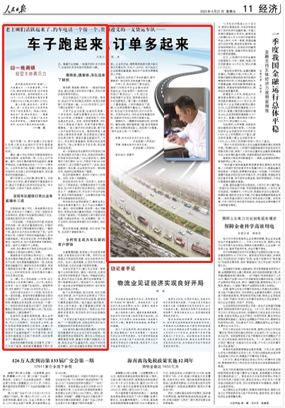 現代物流是經濟的“經脈”,一頭連著生產、一頭連著消費。今年以來,物流供需加快恢復,運行向好基礎有效鞏固。監測數據顯示,4月10日—16日,全國高速公路貨車累計通行5406.4萬輛,環比增長13.96%。 春江水暖,物流先行。在貴州遵義,有一支貨運車隊正在親身感受當下的恢復勢頭。跑施工現場,跑企業廠房,跑田間地頭……隨著訂單量大幅增加,“在路上”成為車隊成員的常態。一輛輛穿梭忙碌的貨車,成為這個春天的生動注腳。