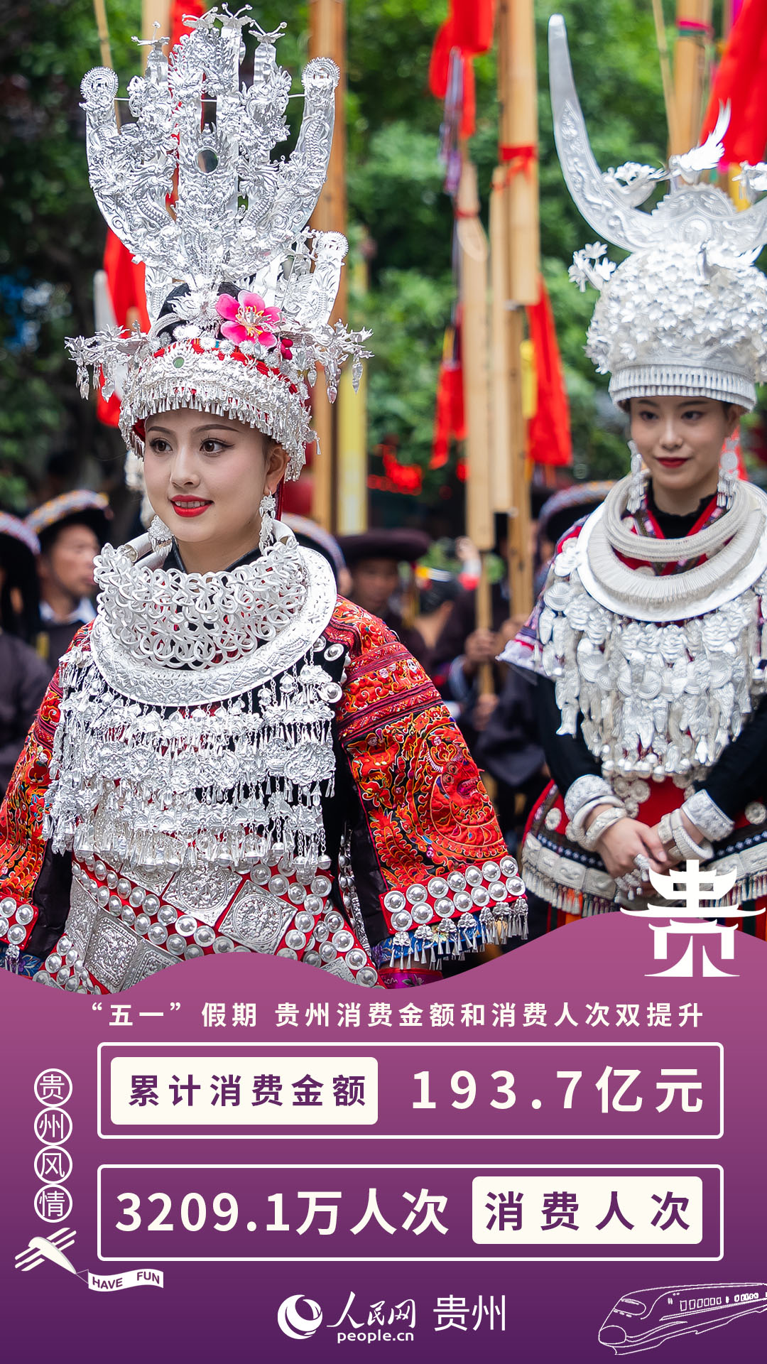 “五一”期間,貴州全省累計消費金額193.7億元,消費人次3209.1萬人次,消費金額同比上升5.63%,消費人次同比上升9.38%,實現消費金額和人次雙提升。