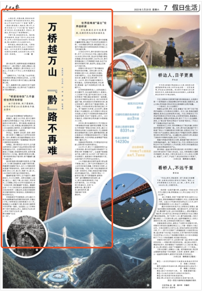 數量多。截至2022年底,貴州已建和在建的各類橋梁超過3萬座,世界前100名高橋近半數在貴州。貴州高速公路通車里程達8331公里,將高速公路連接起來的,是14230座高速公路橋梁,這也意味著平均每過1公里高速,就有1.7座橋梁。
