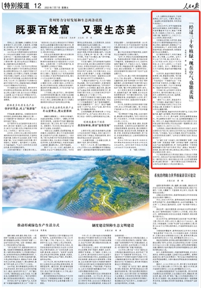 大力推進國家生態文明試驗區建設,打造生態文明建設先行區,加快生態產品價值實現機制試點,開展自然資源統一確權登記試點,推動完善生態補償、生態環境損害賠償、林業碳匯等機制……貴州不斷深化生態文明制度改革,讓良好生態環境成為人民生活的增長點。