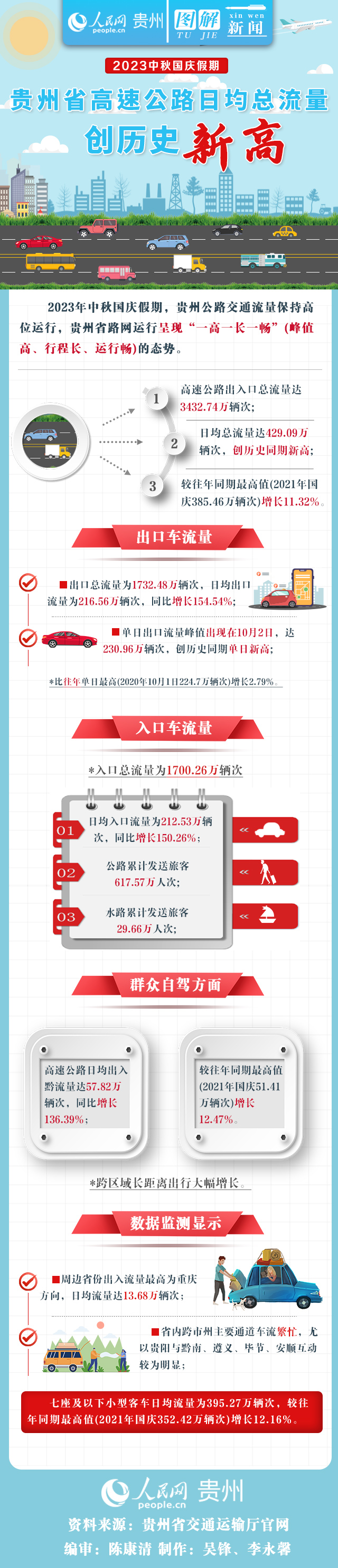 2023年中秋國慶假期期間,貴州省路網運行呈現峰值高、行程長、運行暢的態勢。公路累計發送旅客617.57萬人次,水路累計發送旅客29.66萬人次。