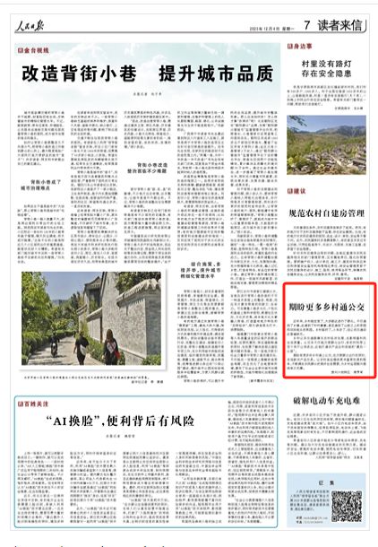 期盼有更多的鄉村通上公交,在方便群眾出行的同時,也活躍農產品交易。讓農村客運提供更豐富更優質的服務,不斷滿足農民群眾的美好生活需要,為鄉村全面振興提供有力支撐。