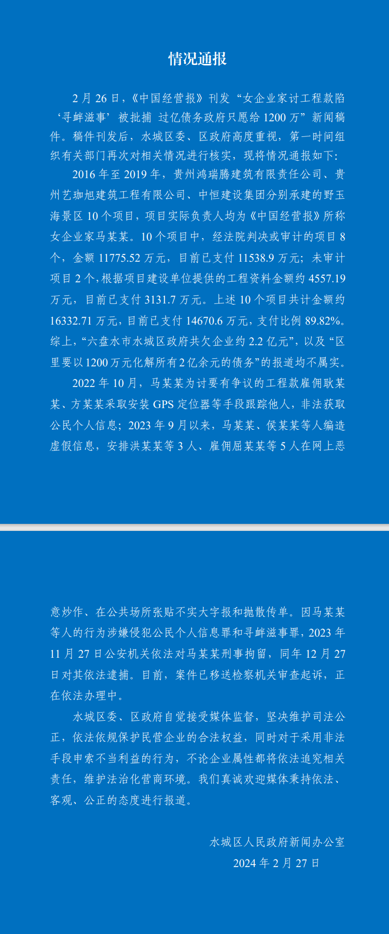 2023年12月18日,本報“讀者來信”版刊登報道《養殖場廢水亂排亂放》,反映貴州遵義市習水縣隆興鎮永勝村養殖廢水亂排亂放,造成嚴重污染的問題。 來信見報后,習水縣委、縣政府高度重視,責成當地生態環境、農業農村等有關部門第一時間著手調查處理?!?/a>