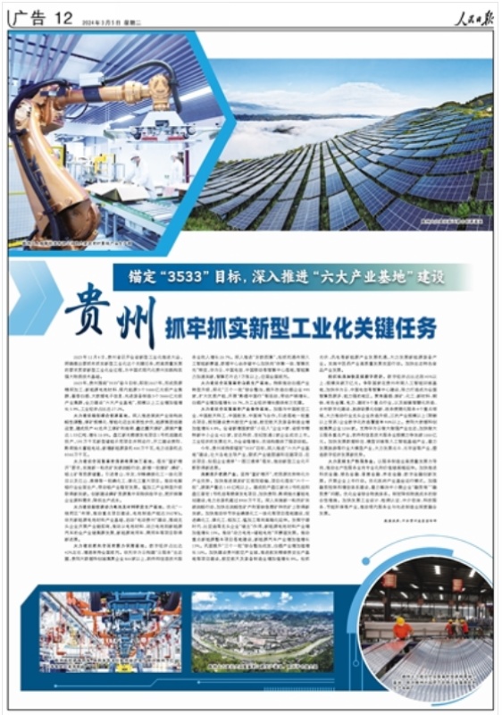 今年,貴州將持續錨定“3533”目標,深入推進“六大產業基地”建設,壯大各地主導產業,狠抓產業鏈圖譜和在建項目、在談項目、擬招企業清單“一圖三清單”落實,推動新型工業化不斷取得新進展。