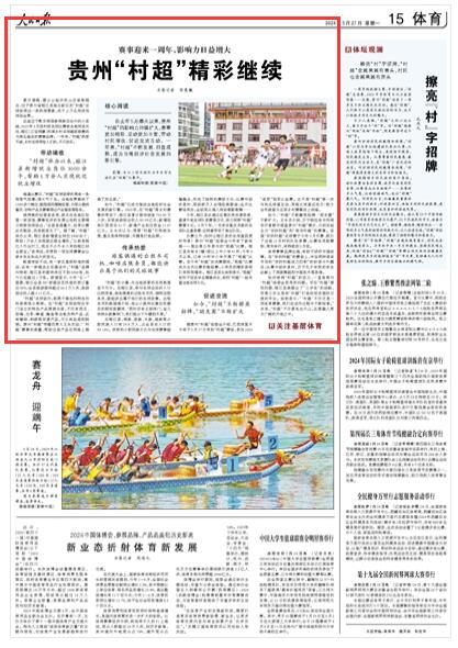 如今,“村超”已成為推動當地經濟社會發展的新引擎。2023年,在“村超”等鄉村賽事的帶動下,榕江縣累計接待游客765.85萬人次,實現旅游綜合收入83.98億元;新增招商引資項目41個,新增產業到位資金11.47億元。王永杰認為,想要“村超”可持續發展,重點是保持創新,關鍵是打造品牌。