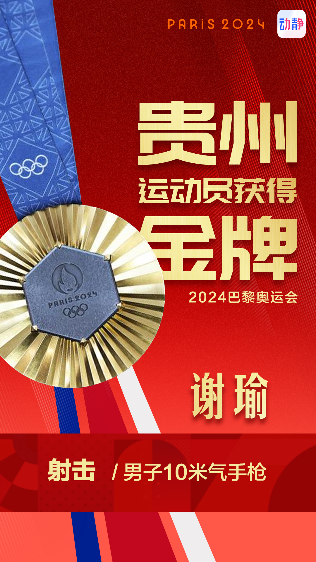 7月28日,在巴黎奧運會射擊男子10米氣手槍決賽中,24歲的貴州運動員謝瑜代表中國隊出戰,奪得金牌。這是中國代表團在本屆奧運會獲得的第三枚金牌,也是貴州運動員在巴黎奧運會上收獲的首枚金牌,書寫了貴州體育新的輝煌篇章。