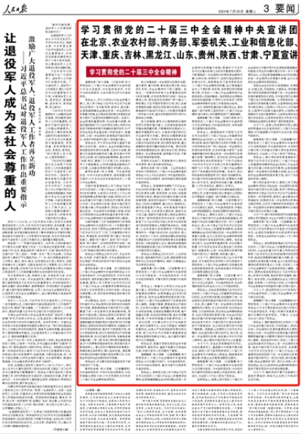 學習貫徹黨的二十屆三中全會精神中央宣講團在北京、農業農村部、商務部、軍委機關、工業和信息化部、天津、重慶、吉林、黑龍江、山東、貴州、陜西、甘肅、寧夏宣講(學習貫徹黨的二十屆三中全會精神)