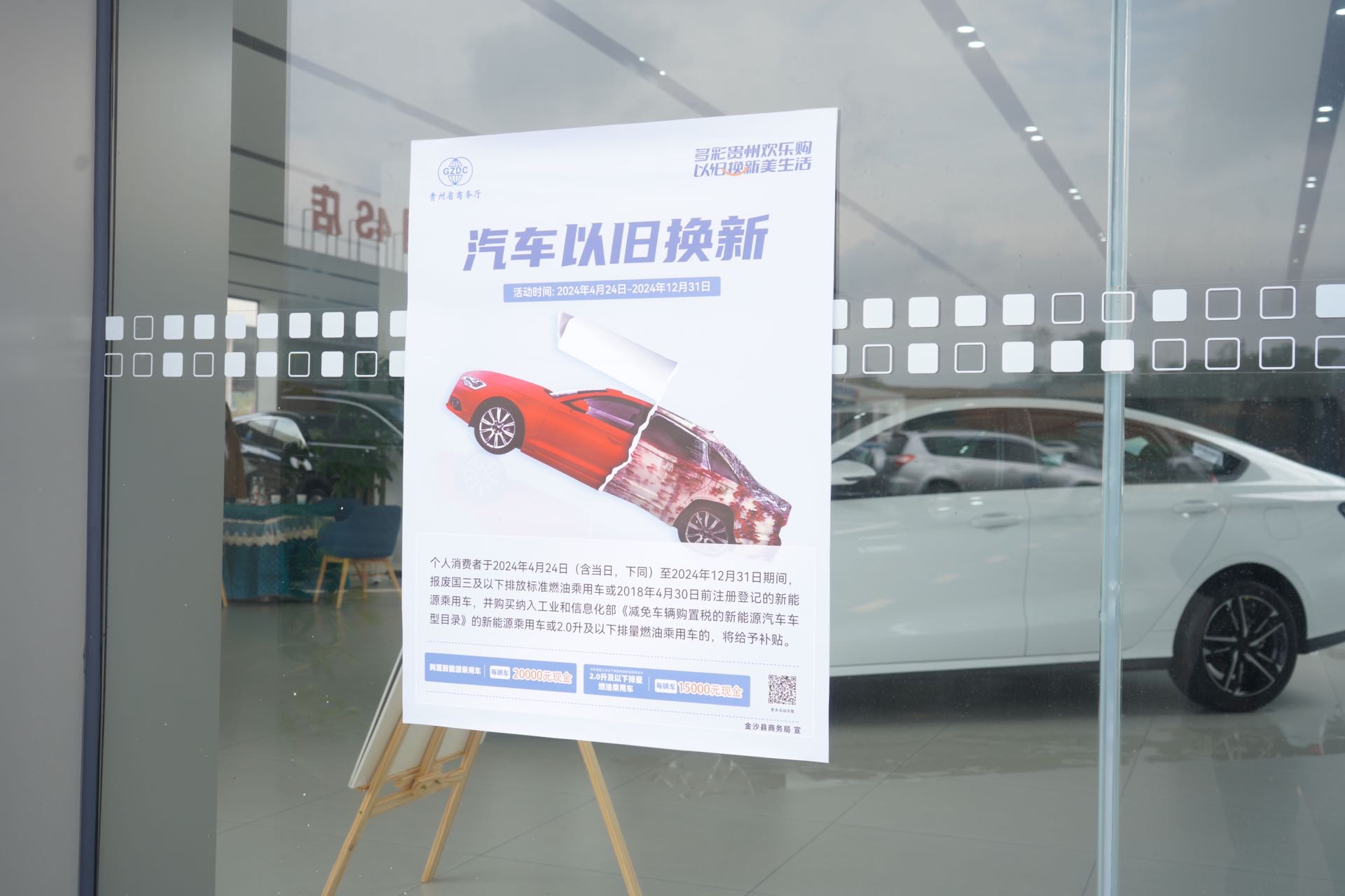 汽車城內,各大品牌車輛展銷間都張貼或是陳列了汽車以舊換新活動的福利宣傳海報,銷售人員在推薦車輛時也不忘介紹消費品以舊換新的優惠活動,讓消費者能夠更加優惠地購車。家住金沙縣五龍街道的蔡治強剛知道以舊換新活動就動了換車的念頭,已在車行尋覓心儀的車輛多日了?!拔以?013年買了輛車,最近也打算置換了,了解到以舊換新補貼政策后,近期打算換一臺新車?!辈讨螐娬f。