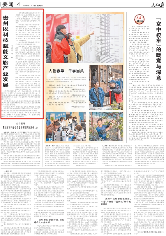 精開資源,廣拓客源,升級服務。2024年,貴州省接待游客人次比上年增長10.4%、旅游總花費增長13.3%。在貴州各地,“科技+文旅”正成為旅游消費新熱點。