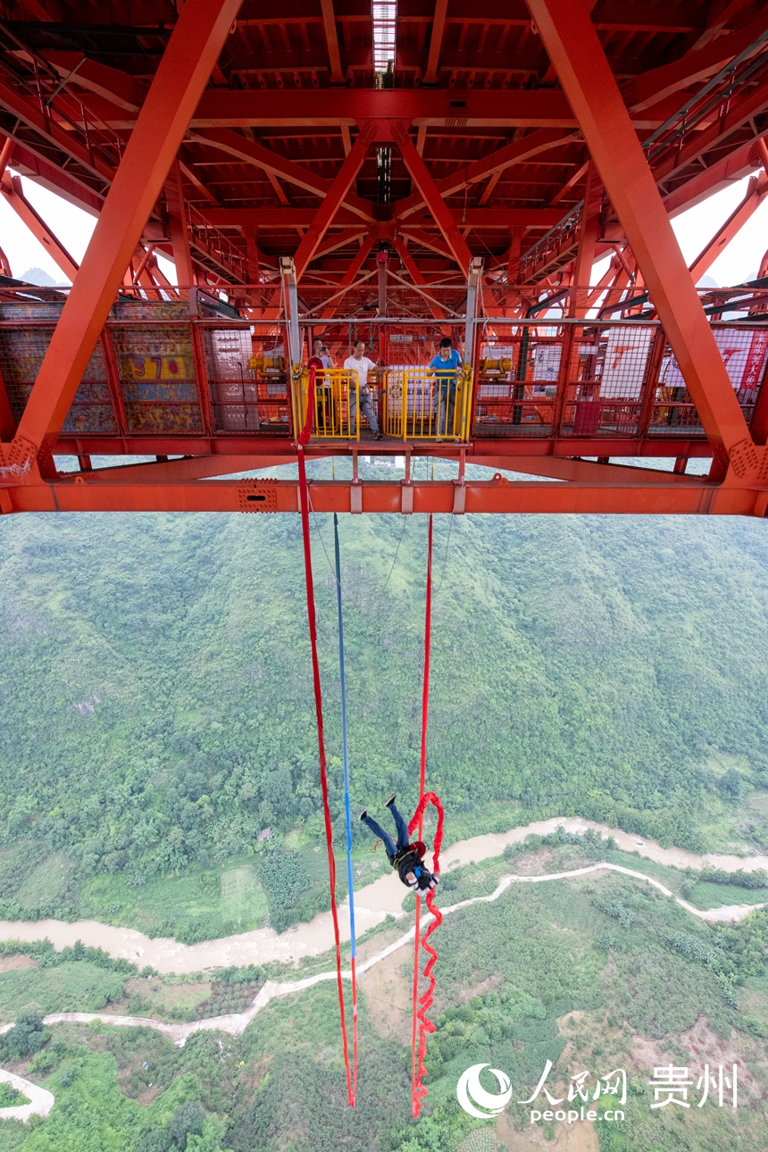 游客體驗蹦極,感覺極限運動帶來的刺激。人民網記者 翁奇羽攝