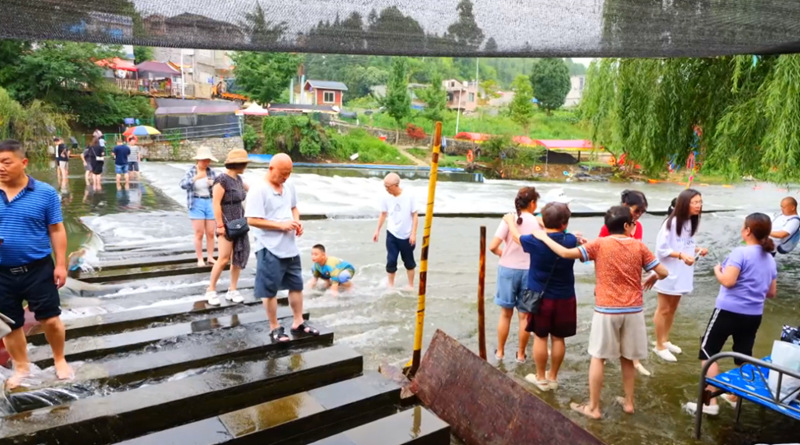 來到大西橋鎮九溪村,百畝荷塘、魚鱗瀑布、彩虹橋等吸引眾多游客駐足觀光。不少省內外游客紛紛選擇來到這里感受自然風光,體驗舒適涼爽的生活。