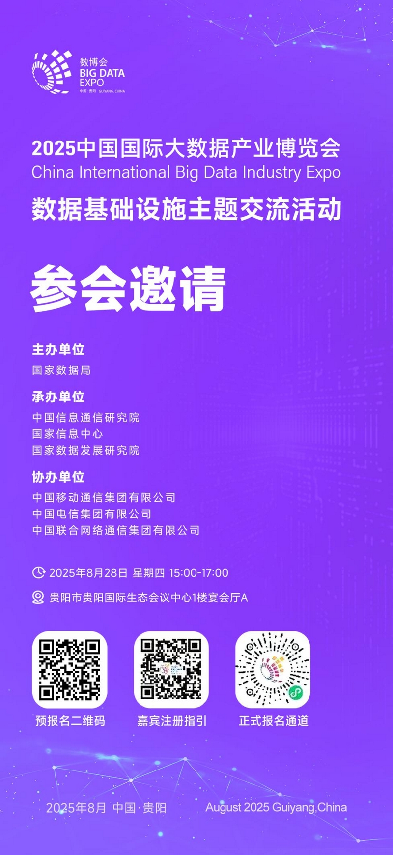 數據基礎設施主題交流活動作為2025中國國際大數據產業博覽會的重要組成部分,將于2025年8月28日下午在貴陽市國際生態會議中心1樓宴會廳A舉辦。