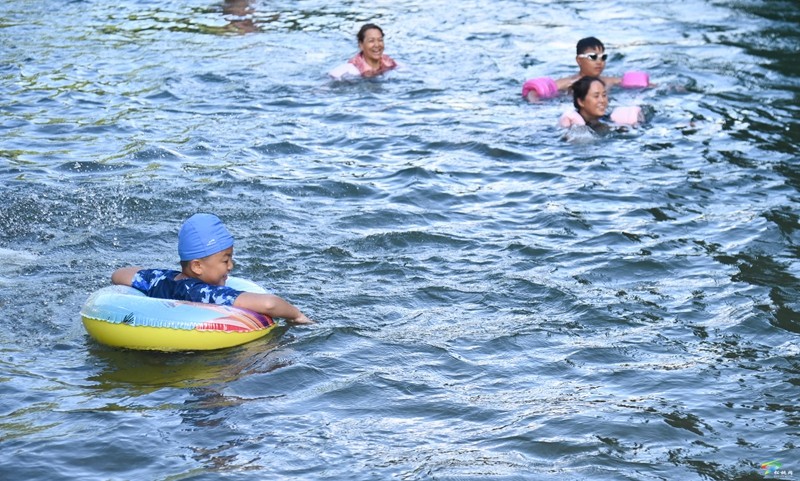桃花源社區的水質好,全年平均氣溫在15.8℃,憑借獨特氣候和豐富水資源優勢,推出“避暑玩水”,暑期旅游熱度持續攀升。游客們在天然泳池中暢游,或在淺灘處燒烤歇涼,處處洋溢著夏日的清涼與歡樂。