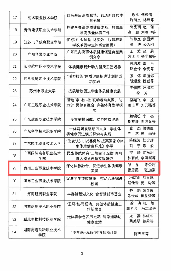 貴州工業職業技術學院“深化體教融合,促進學生體質健康發展”案例入選全國優秀典型案例