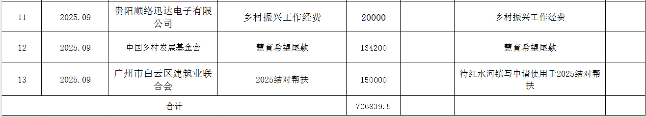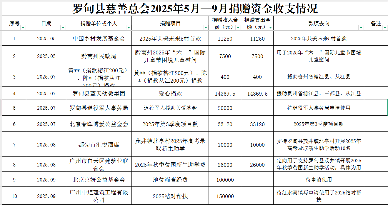 羅甸縣慈善總會2025年5月—9月捐贈資金收支情況