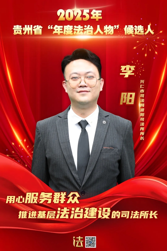 李陽,男,現任黔西南州興仁市司法局波陽司法所所長、四級主任科員。2013年參加工作以來,李陽扎根基層,從一名普通司法助理員逐步成長為政治堅定、業務精湛、深受群眾信賴的司法所所長。他創辦的“法治興仁”抖音賬號獲評全省網絡普法優秀案例,第三屆法治時代創新論壇“2025普法與依法治理工作創新案例”,個人榮獲興仁市司法局“年度先進個人”。