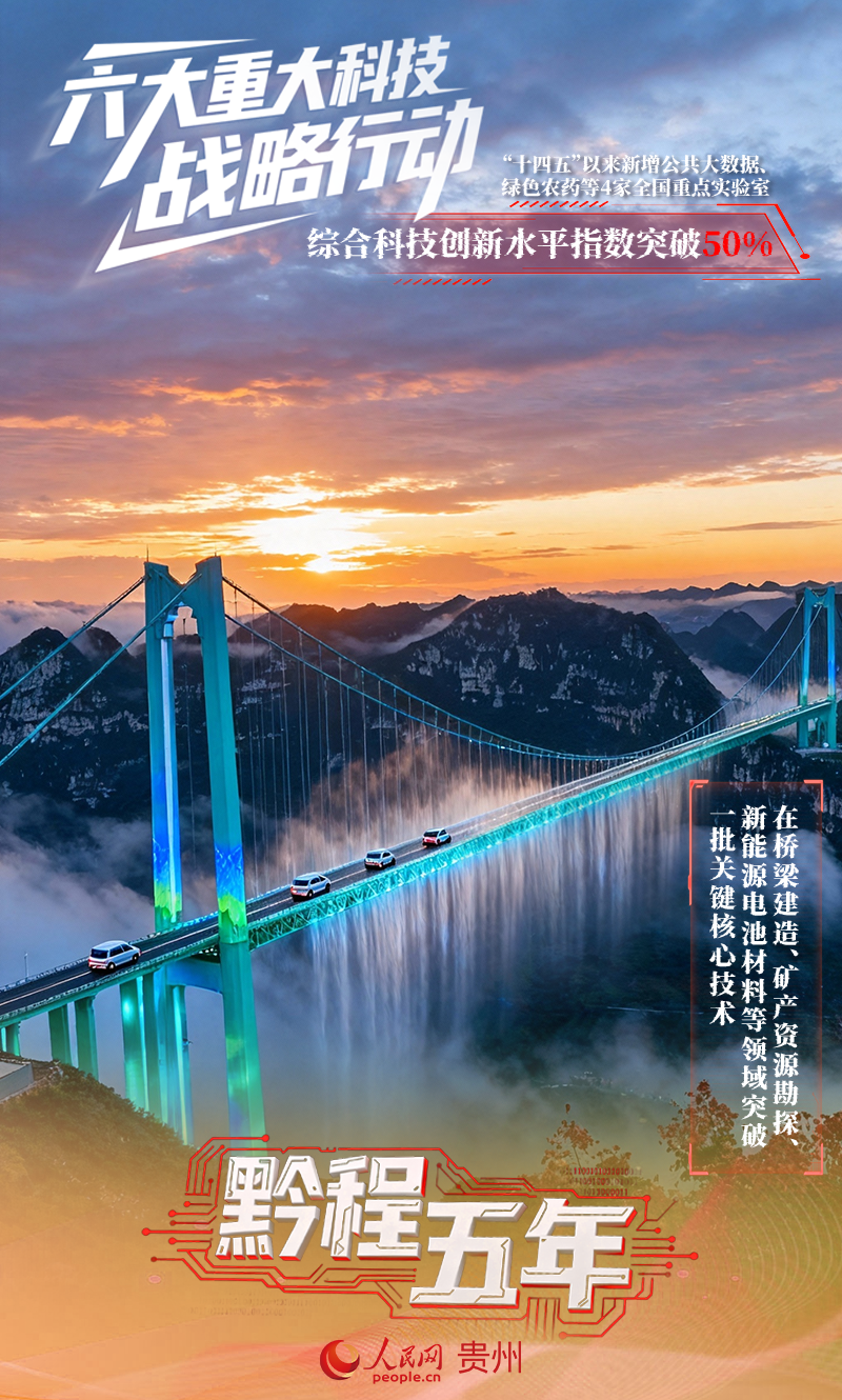 貴州實施“六大重大科技戰略行動”,推動科技創新和產業創新深度融合,“十四五”以來新增公共大數據、綠色農藥等4家全國重點實驗室。在橋梁建造、礦產資源勘探及精深加工、新能源電池材料等領域突破一批關鍵核心技術,綜合科技創新水平指數突破50%。不止如此,長征火箭、神舟飛船、C919大飛機等國之重器背后都蓄積著貴州科技的力量。