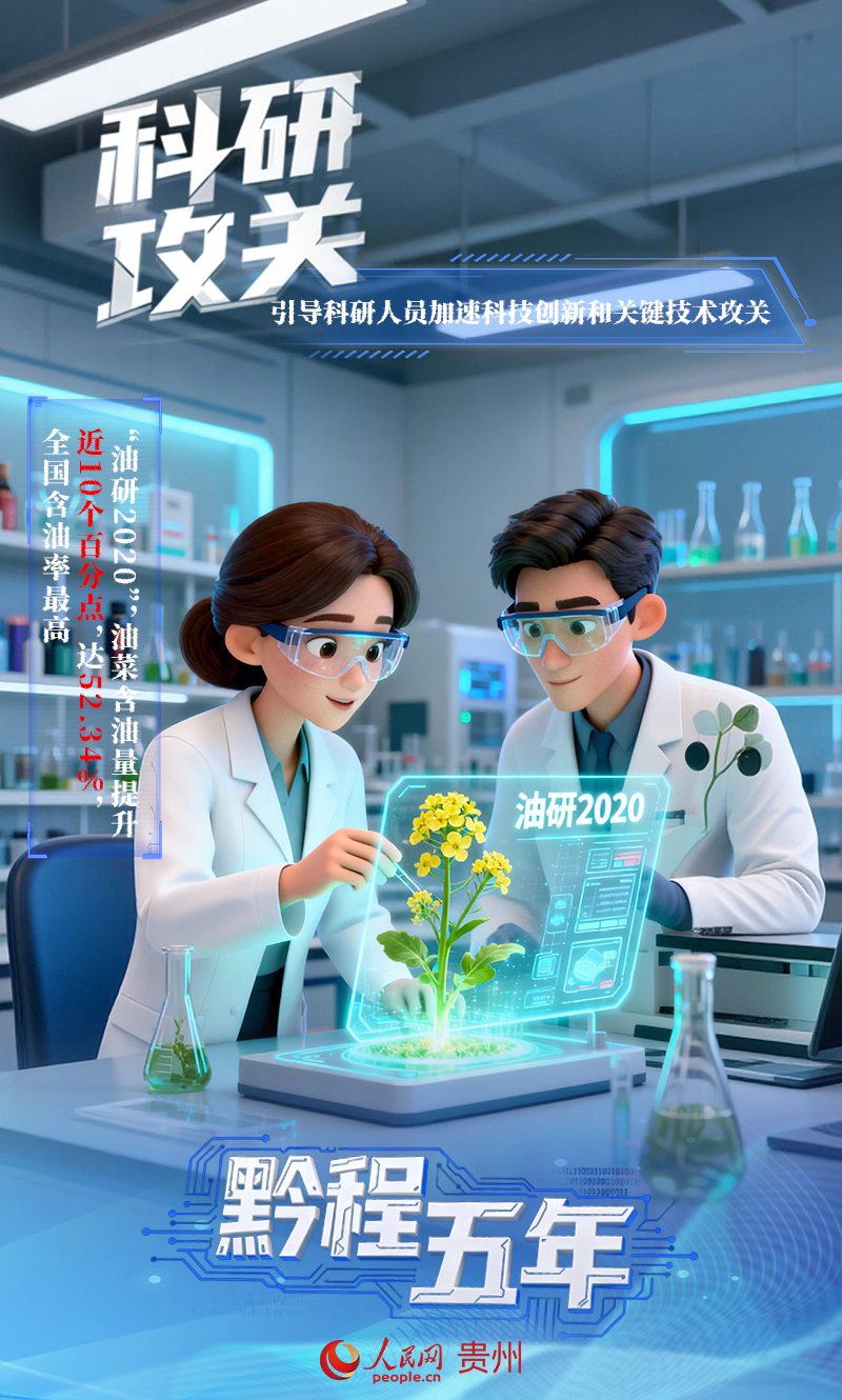 貴州引導科研人員加速科技創新和關鍵技術攻關,省農科院油菜所自主育成“油研2020”,把油菜含油量提升近10個百分點,達52.34%,全國含油率最高;中國科學院地球化學研究所牽頭完成“月球地質演化與數字地質圖研編”,編制了世界最高精度全月地質圖。