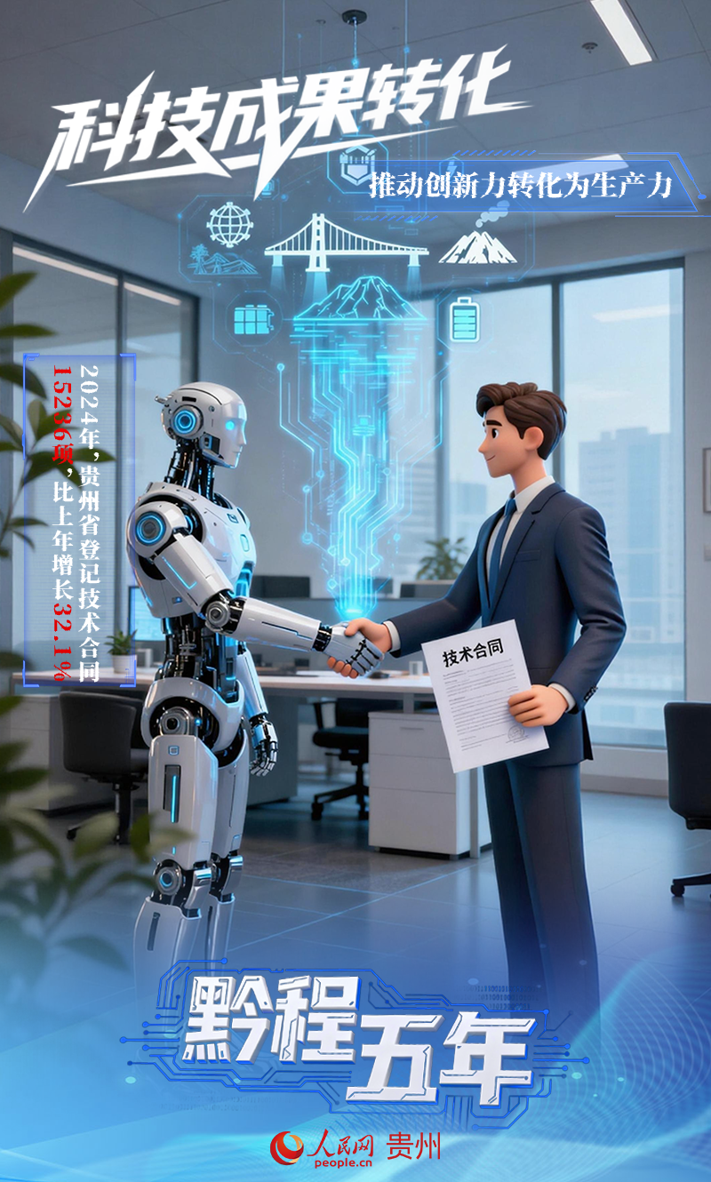 貴州深化科技成果轉化機制改革,推動“創新力”轉化為“生產力”。2024年,全省登記技術合同15236項,比上年增長32.1%;技術合同成交金額615.82億元,增長25.4%。